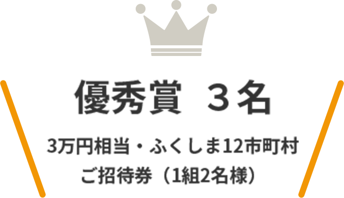 - ・優秀賞:ふくしま12市町村ご招待券(JTB旅行券)3万円分(3名様)