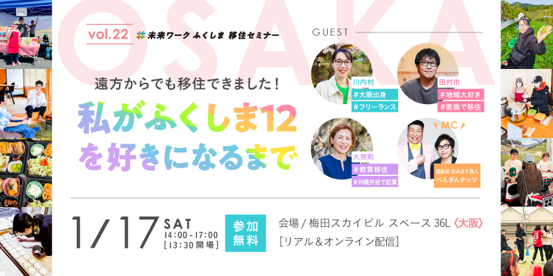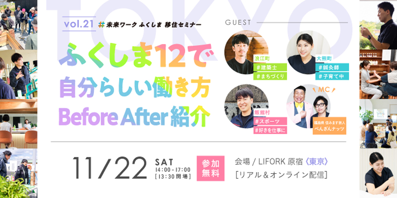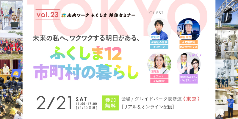 「どうして移住したの?」「暮らしてみて実際どう?」 そんな移住に関する疑問や質問に福島12市町村に移住した先輩移住者がホンネで回答。現地の魅力やリアルな暮らしを直接聞ける絶好のチャンスです。