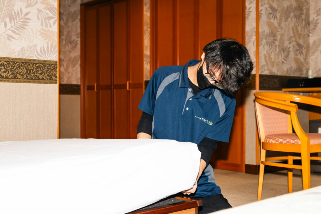 せせらぎ荘では日帰り入浴と宿泊を提供しており、それに関わる業務全般を担当しています。お風呂の掃除や湯温の調整といった入浴の前準備、お部屋の清掃やベッドメイキング、フロントでの接客とお部屋への案内などです。施設が小規模でスタッフの人数も10名ほどと少ないため、必要なことはすべてやっています。僕はパソコン操作ができるので、書類やチラシの作成もやっています。休みは休館日の月曜と、ほかのスタッフと調整しながら不定期で取っています。