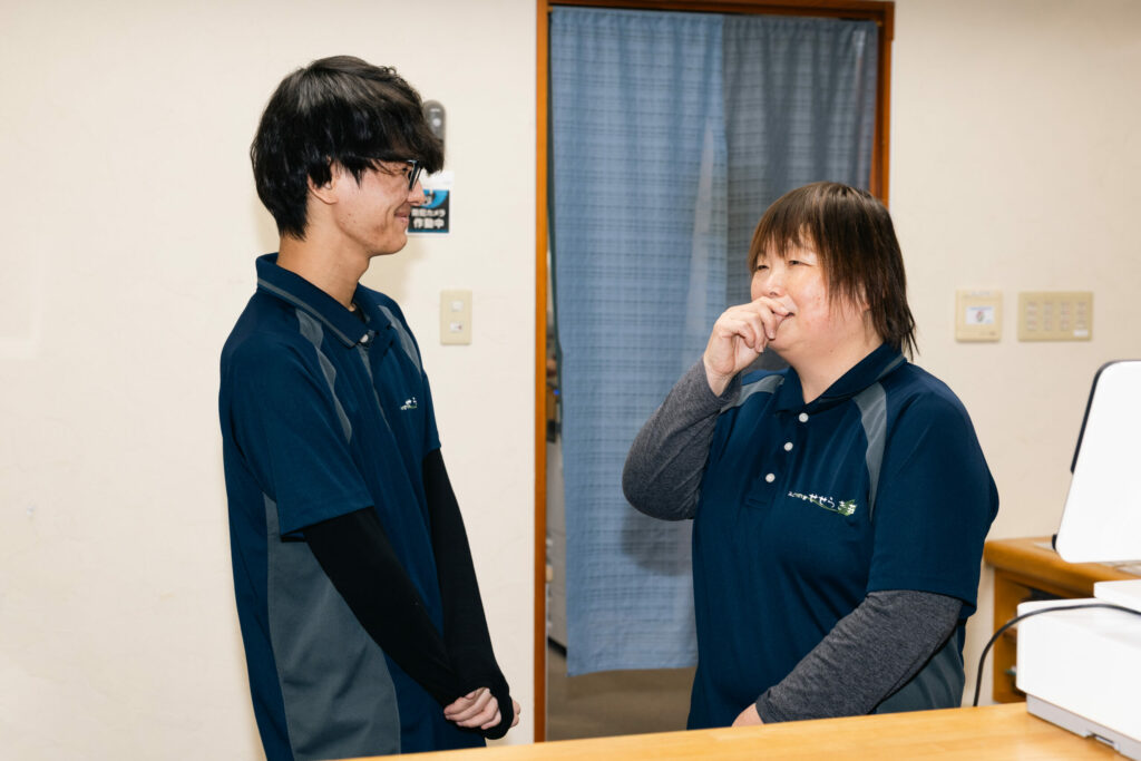 あと、これは直感なのですが、葛尾村の人はなんだかみんな楽しそうに生きているなと思います。お客さんを見ていても、知らない方同士なのに、お風呂上がりにロビーに自然と集まってお話ししているんです。お客さんに気さくに話しかけてもらうことも多く、常連さんがフロントで「今日は何人?」と聞いてくれて、スタッフの人数分のお菓子をもらうこともあります。関西弁も珍しがってもらっています。