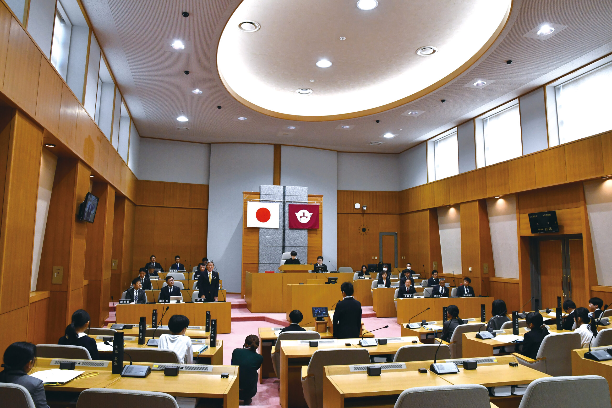 答弁するのは、吉田栄光(えいこう)町長を筆頭に、副町長や教育長、質問内容に関連する各課の課長など、町政の運営に日々奔走する人たち。質問に答える際は、本物の議会と同じように大人も挙手し、議長に発言の意思を示します。
