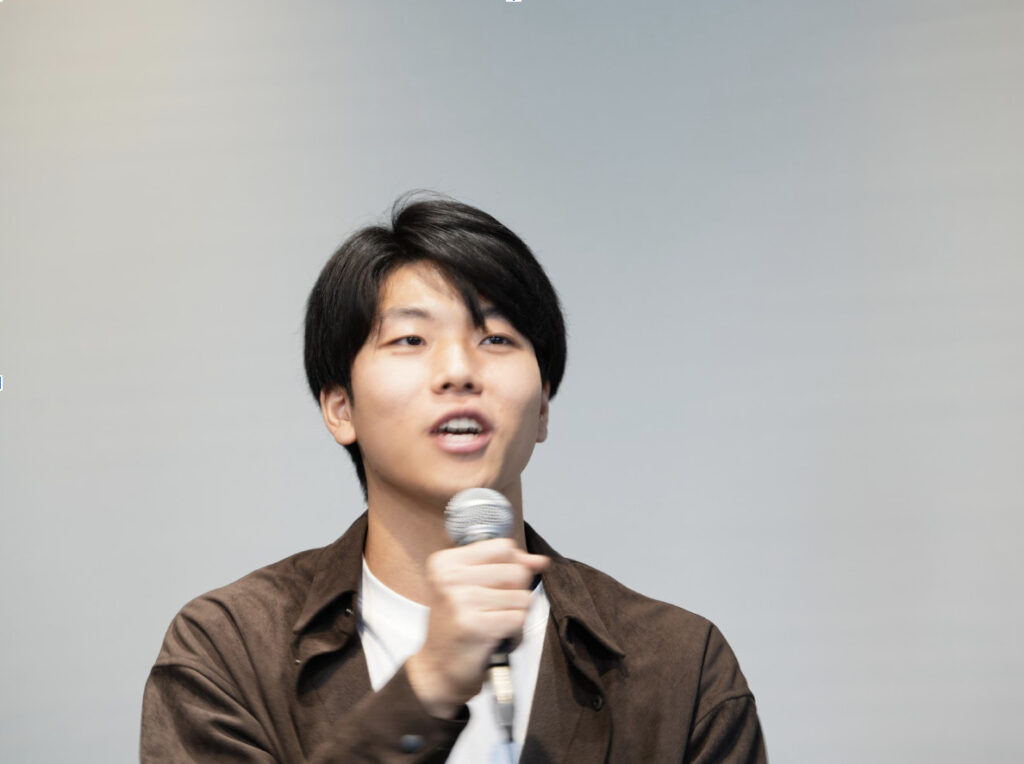 団体の代表を務める、デジタルハリウッド大学の隂山弘暉さんにお話いただきました。福島県で自身が被災した経験から活動をはじめられ、「防災me」は「防災メディア」としての発信もしていて、現在、GoogleやYahoo!でも「防災メディア」のなかで2番目まできているというお話に客席も驚きに包まれました。福島12市町村にもよく来られるとのことで富岡町の「とみおかアーカイブ・ミュージアム」を見学したり、大熊町に新しくできたスタートアップ施設にもよく足を運んでいるといい、現地で活動されている方々やスタートアップの方々、そして学生のアクティブな動きに良い刺激をもらい、交流を楽しんでいると話しました。
