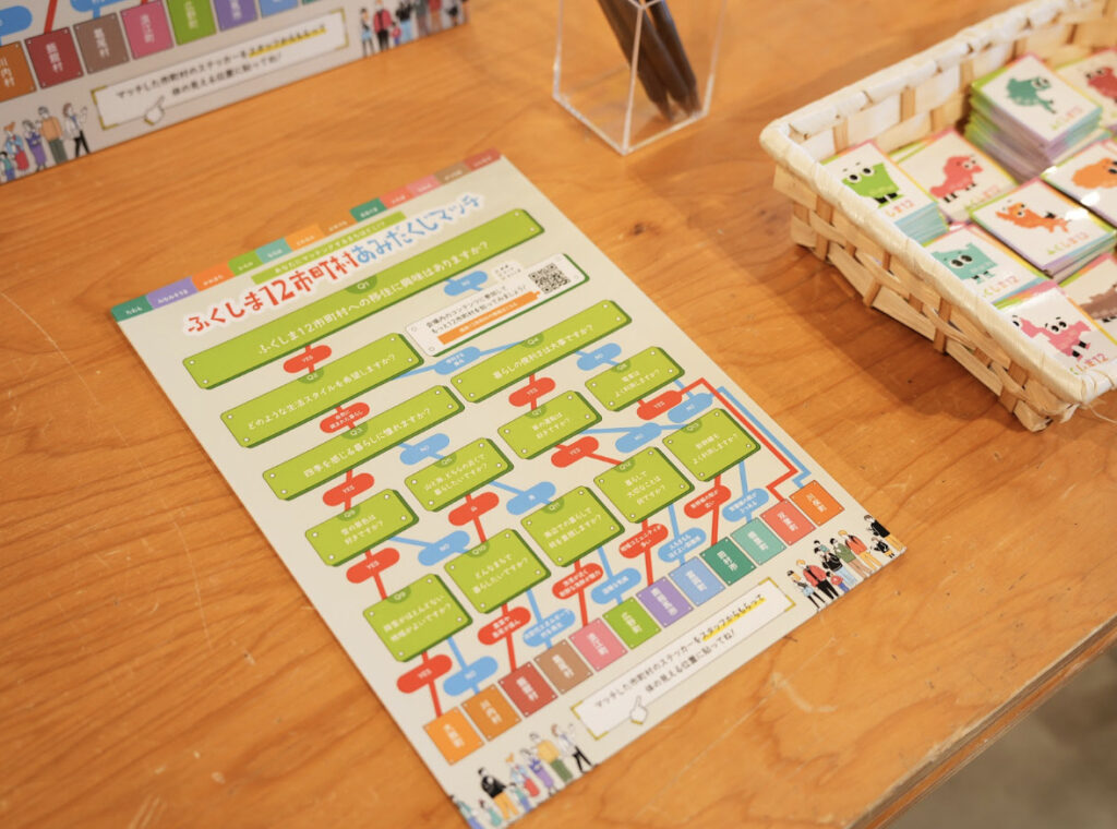 「12市町村もあったら選べない!」「なにが違うの…?」と感じるあなたに体験いただきたいあみだくじです。「あみだくじマッチ」で12市町村の中から、自分にぴったりのまちがきっと見つかります!今年度登場したかわいらしいキャラクターのステッカーも会場参加者にプレゼントしました。