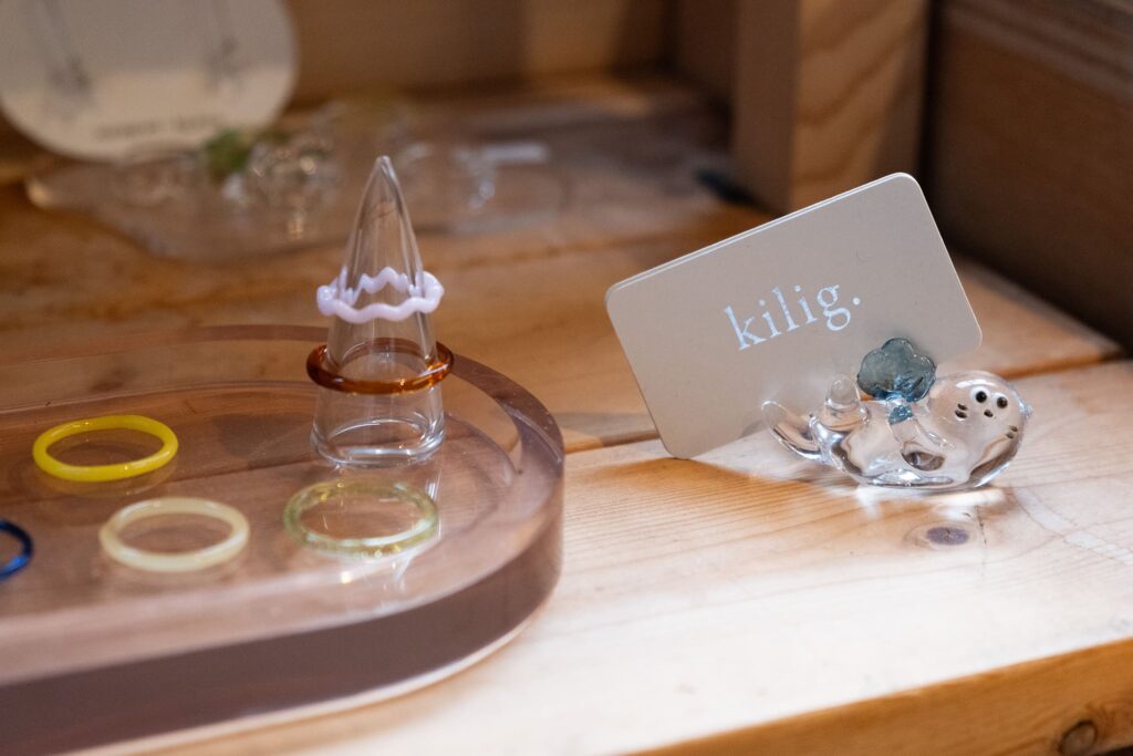 「オリジナル作品をつくる時間は、一番楽しいです。新しい技術にチャレンジするのも自由で、気付いたらあっという間に時間が経ってしまいます。うまくいかないこともありますが、イメージどおりにできたときには『よしよし』と思いながらやっています。私のブランド名は『kilig.(キリグ)』。タガログ語でお腹の中で蝶が舞う気分という意味があり、めまいがするほどドキドキする、ロマンチックなことがあった時に使われる言葉です。私のアクセサリーを手にとった方にドキドキやワクワクしてもらえたら。そんな気持ちで製作しています」(清田さん)