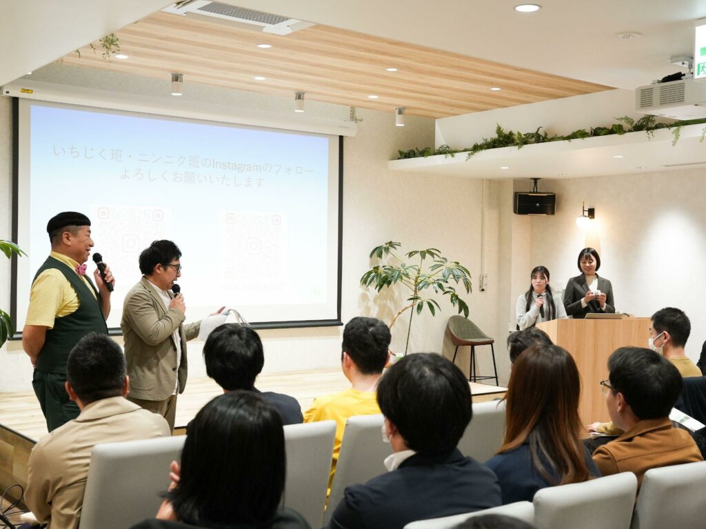 登壇学生は「いちじく班」と「ニンニク班」を担当。いちじく班は、生で流通できない“もったいないいちじく”を活用し、商品開発やイベント販売、学内パン屋とのコラボなどに取り組み、浪江の新たな特産づくりに挑戦しています。