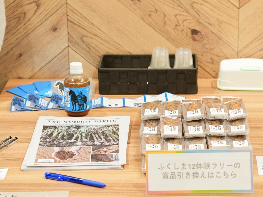福島12市町村について気軽に知れる会場内コンテンツを体験した方には、東京農業大学の学生が、浪江町で商品開発に携わったいちじくフィナンシェとクラフトコーラの試食・試飲が振舞われました!「ぺんナツちょい寄りカフェ」「12市町村あみだくじマッチ」「登壇学生が開発した新アプリの体験デモ」など楽しい企画を多くの方に楽しんでいただけました!