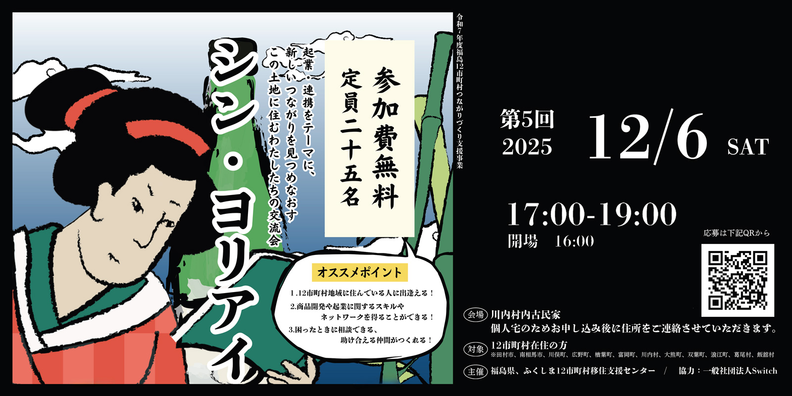 | 9. 主催・協力 | 【主催】福島県・ ふくしま12市町村移住支援センター 【協力】一般社団法人Switch |
