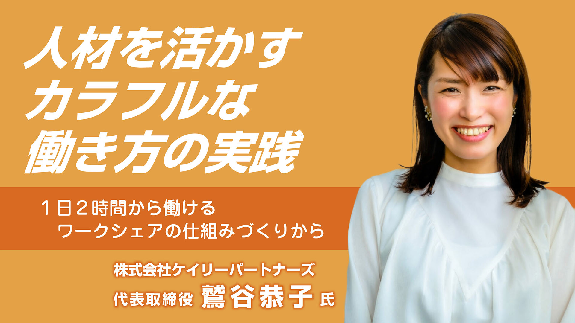 株式会社ケイリーパートナーズ代表取締役の鷲谷恭子氏をお呼びし、第一部では「人材を活かすカラフルな働き方の実践 ~1日2時間から働けるワークシェアの仕組みづくりから~」と題してご講演いただき、第二部では企業の働き方の悩みを出発点に改善アクションプランを作成するワークショップを実施しました。