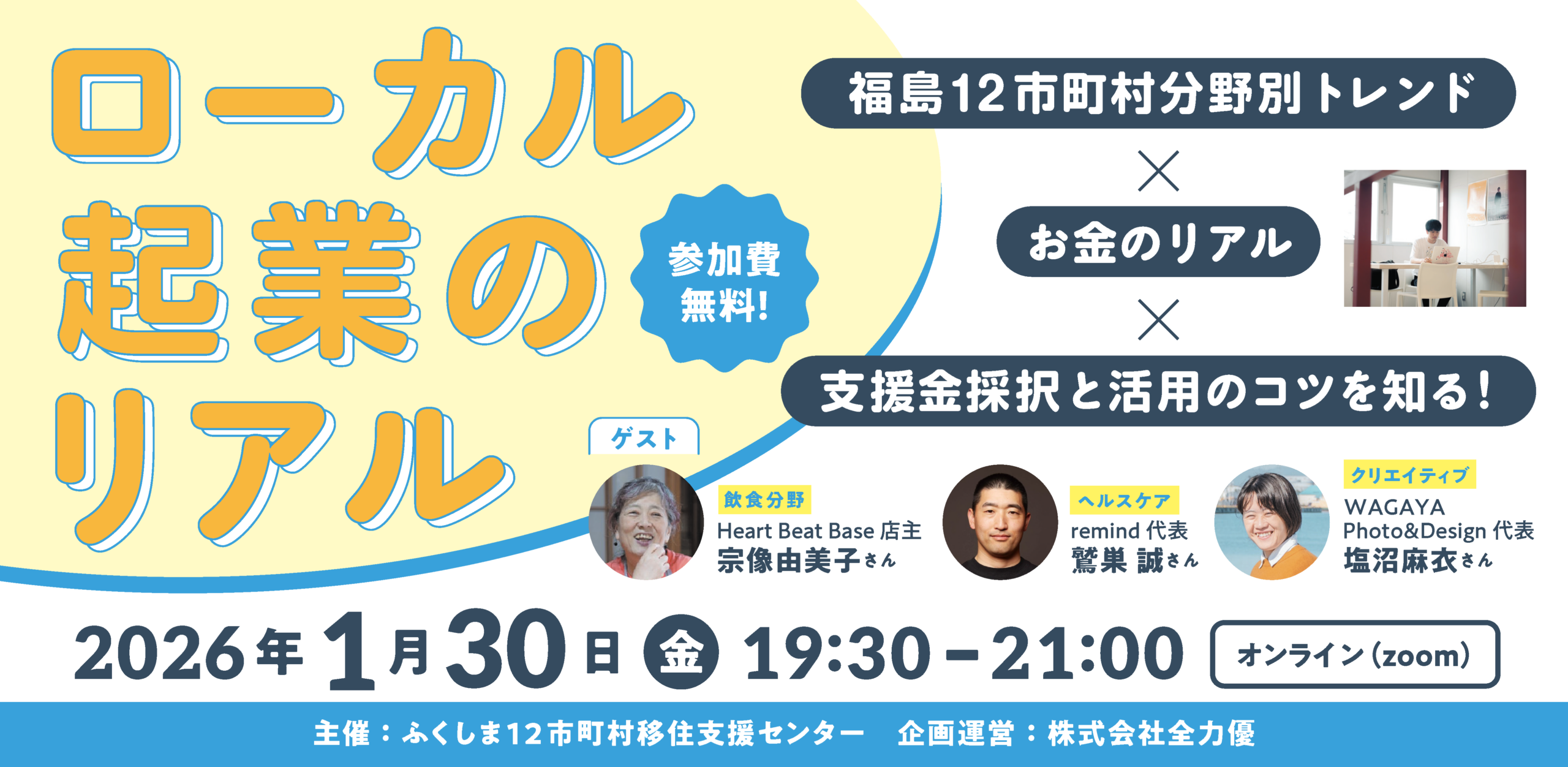 【オンライン開催】ローカル起業のリアル ~福島12市町村分野別トレンド×お金のリアル×支援金採択と活用のコツを知る!~