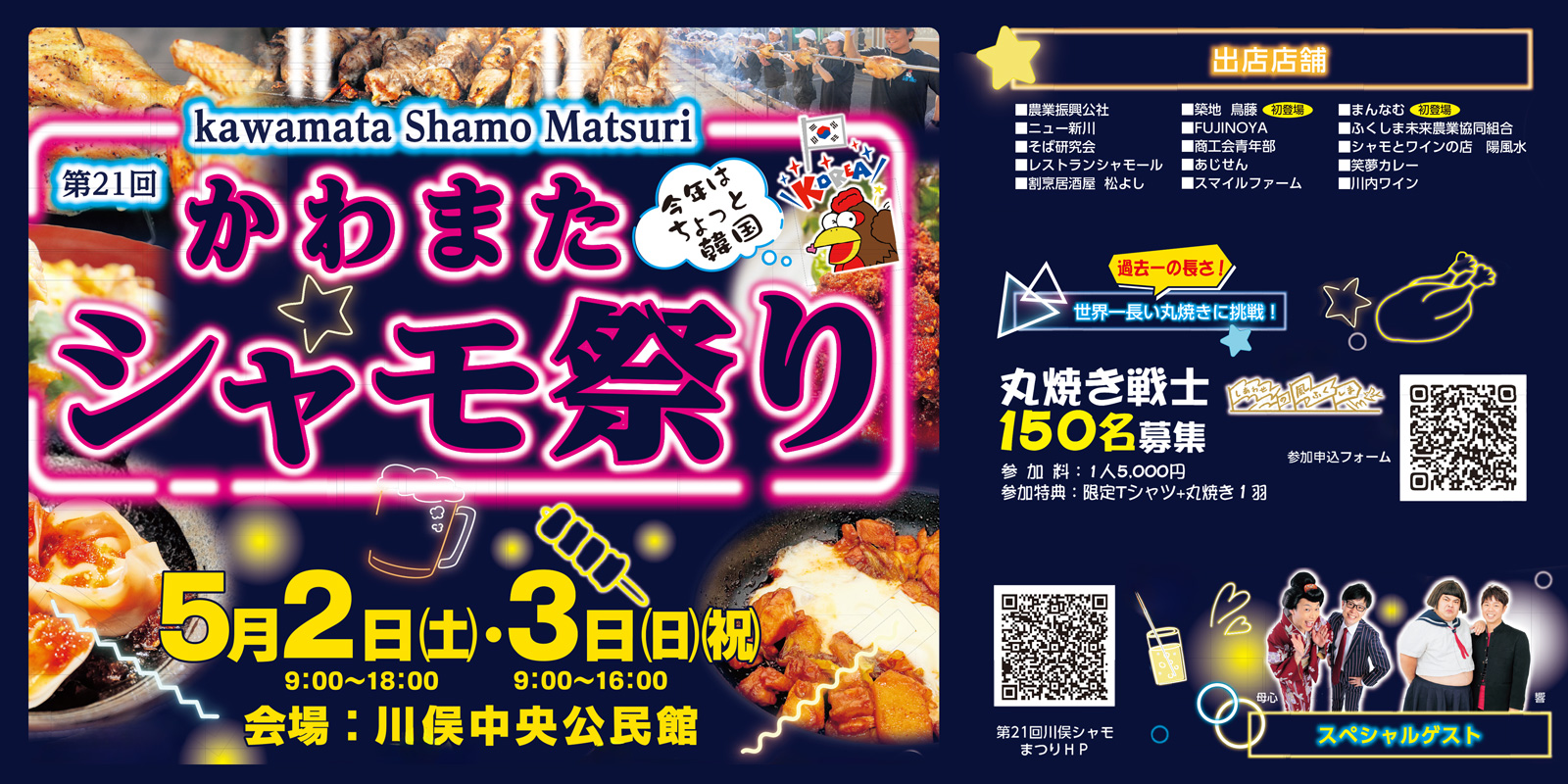 | 5. 問い合わせ | 川俣シャモまつり実行委員会(川俣町役場政策推進課内) 電話024-566-2111 内線2406 |